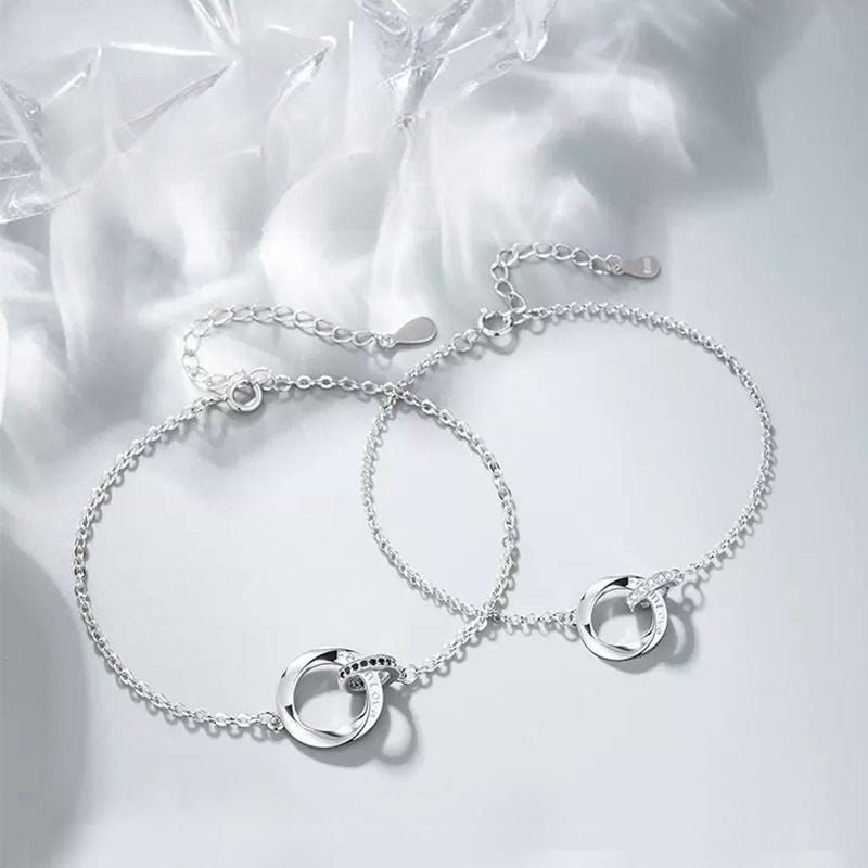 光沢のあるチェーンと永遠の愛を意味するメビウスのリングがポイントのペアブレスレット。洗練されたデザインが手元を美しく引き立てます。シンプルかつ上品なデザインはファッションを選ばず気軽におしゃれを楽しめるアイテムです。大切な人との絆がより一層深まることでしょう。