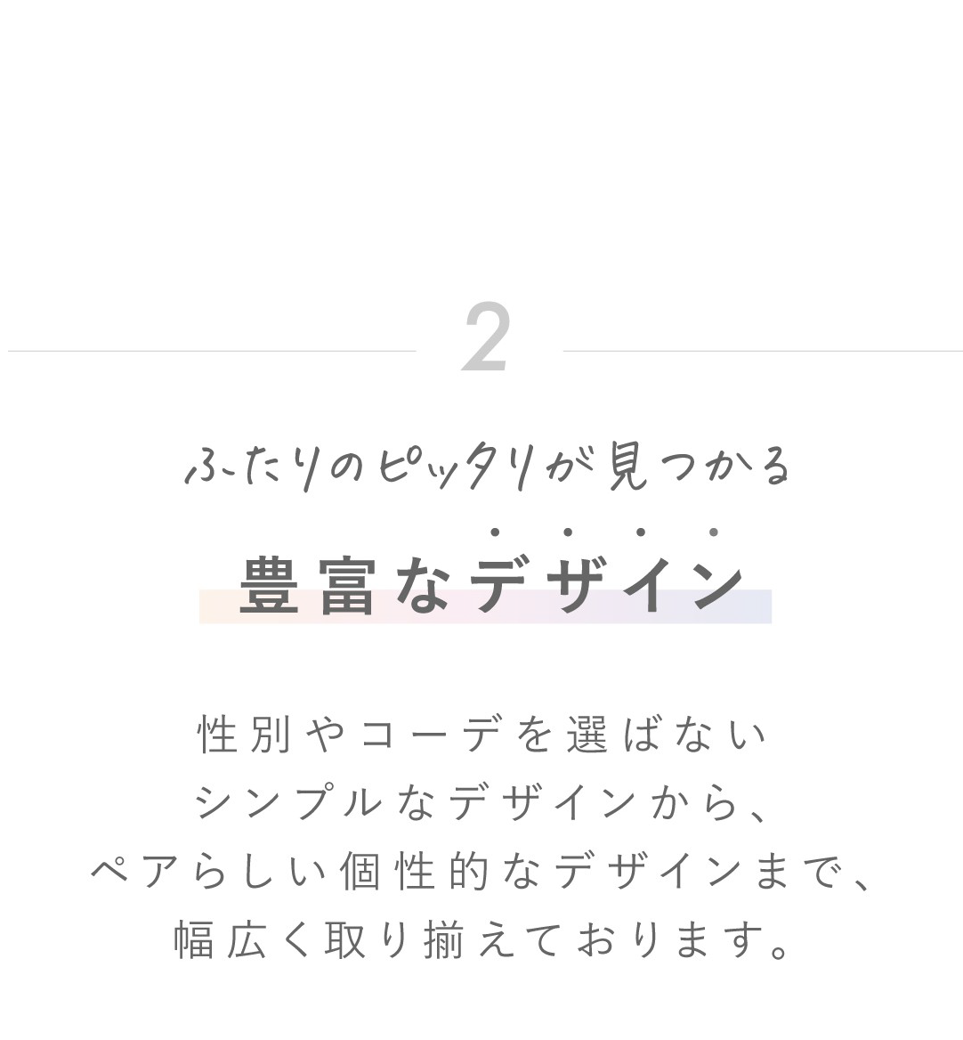 注意事項 | ■閲覧時のモニター環境によりましては、実際の商品と若干違う色味に映ることもございます ■単品でのお買い求めはできかねます ■「メンズ×2」または「レディース×2」をお選びいただいた場合、お届けするアイテムは2点とも同じデザイン・サイズとなります。「メンズデザインのアイテムをレディースサイズにする(もしくはその反対)」という仕様ではありませんので、予めご了承ください。 |